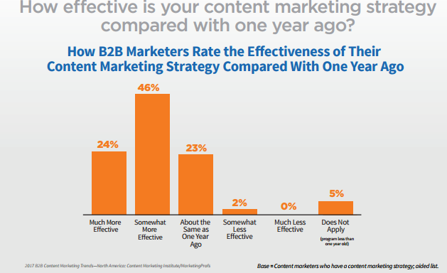 According to CMI and its B2B content marketing report for 2017, only 37% of B2B marketers have a documented content marketing strategy, while 41% of them have a strategy in mind, but it’s not documented.